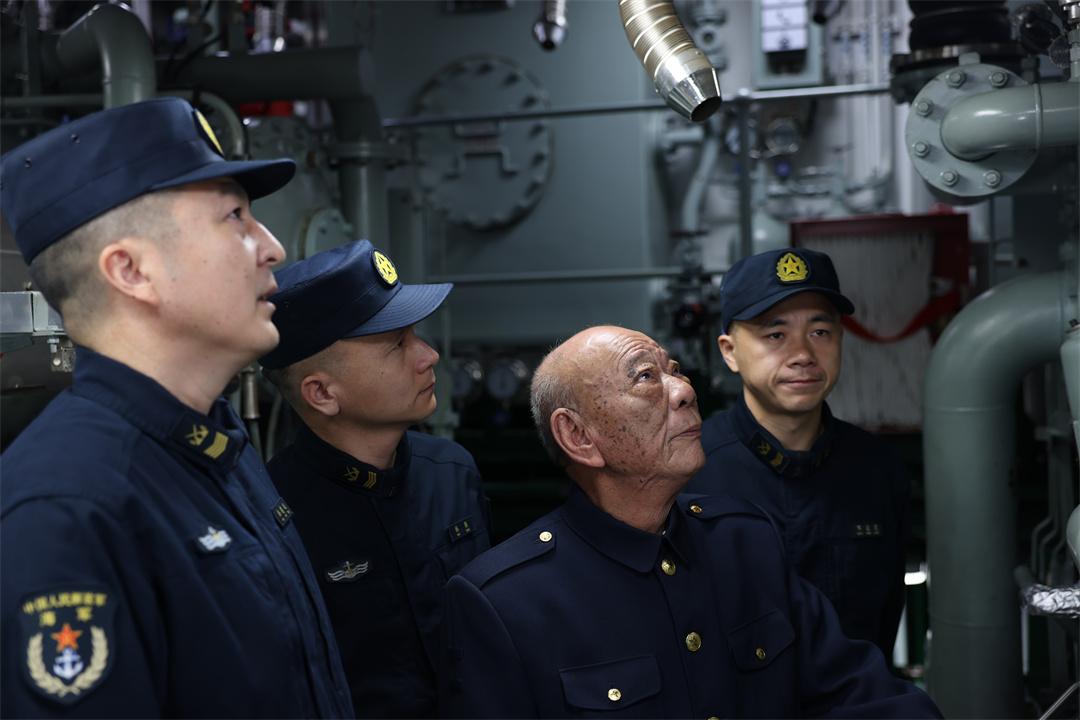 圖為一等戰(zhàn)功“海上猛虎艇”588艇原輪機班長王木昌參觀第五代“海上猛虎艇”紅河艦機艙,感受新老“海上猛虎艇”發(fā)展變遷。劉嘉 攝