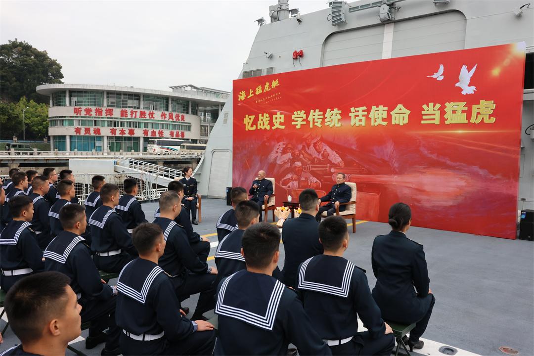 崇武以東海戰(zhàn)親歷者、“海上猛虎艇”588艇原輪機班班長王木昌和參加首批南沙戰(zhàn)備巡邏的第三代“海上猛虎艇”艇長謝建明受邀,與官兵共話經(jīng)典戰(zhàn)例和戰(zhàn)斗故事。