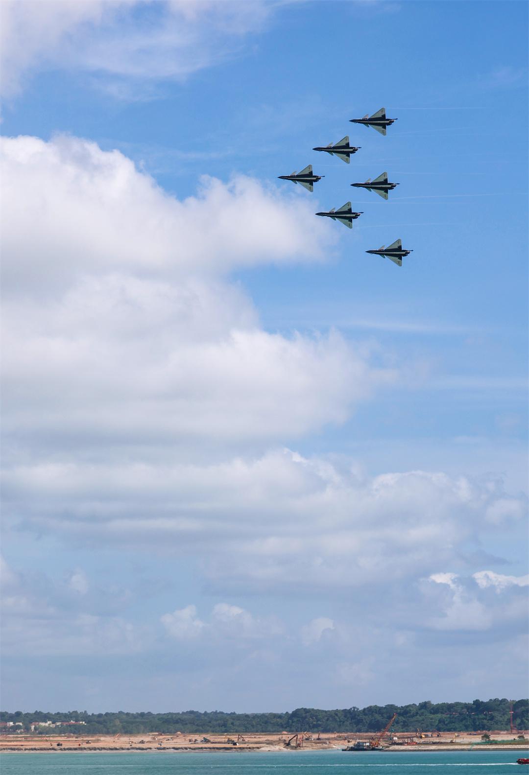 1月30日,根據(jù)主辦方安排,應(yīng)邀參加第十屆新加坡航展的空軍八一飛行表演隊(duì),在樟宜機(jī)場(chǎng)進(jìn)行適應(yīng)性訓(xùn)練,為正式飛行表演做準(zhǔn)備。這是空軍八一飛行表演隊(duì)抵達(dá)新加坡后的首場(chǎng)飛行。