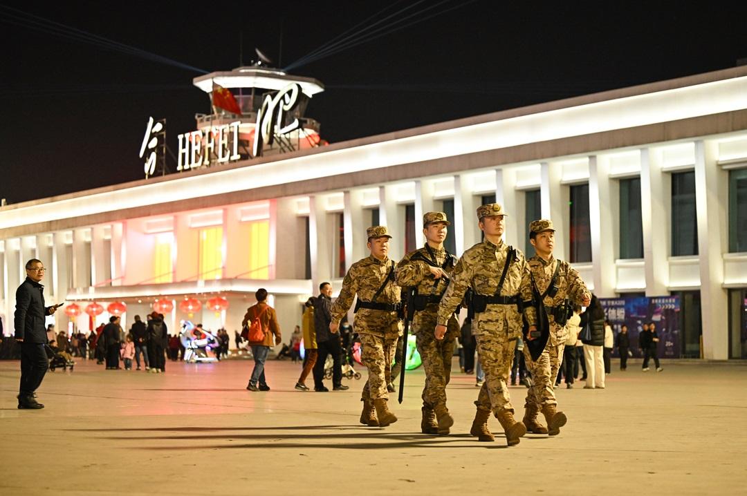 春節(jié)假期,武警安徽總隊(duì)合肥支隊(duì)官兵堅(jiān)守戰(zhàn)位,守護(hù)一方安寧,確保群眾度過一個(gè)歡樂祥和的新春佳節(jié)。