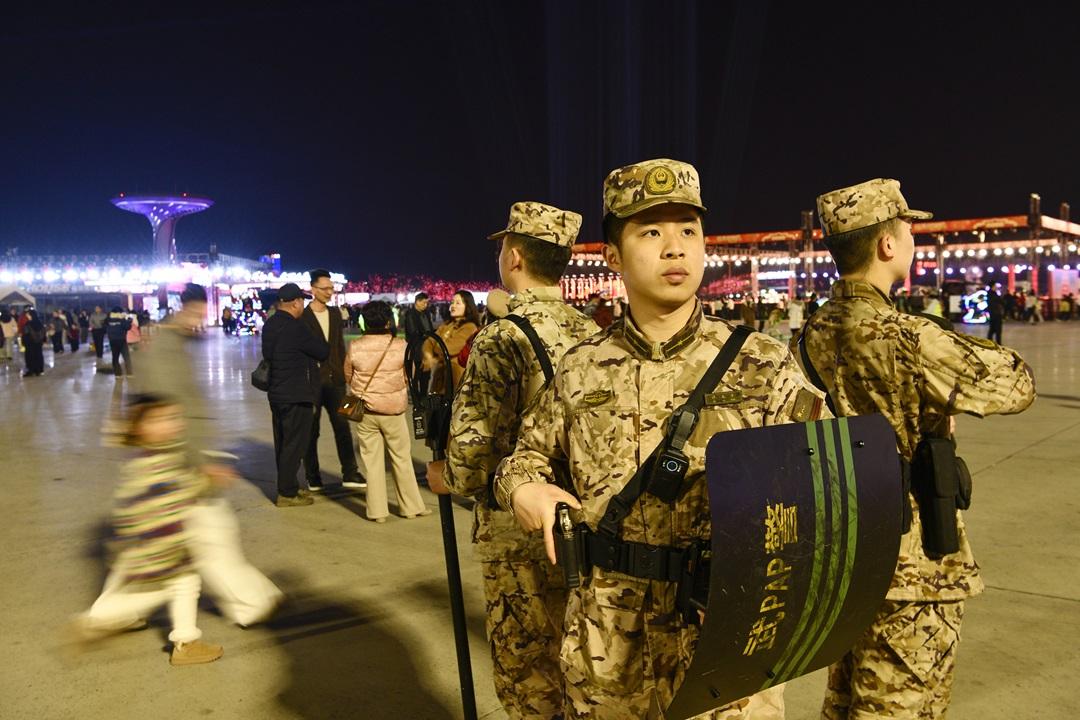 圖為武警官兵正在巡邏。