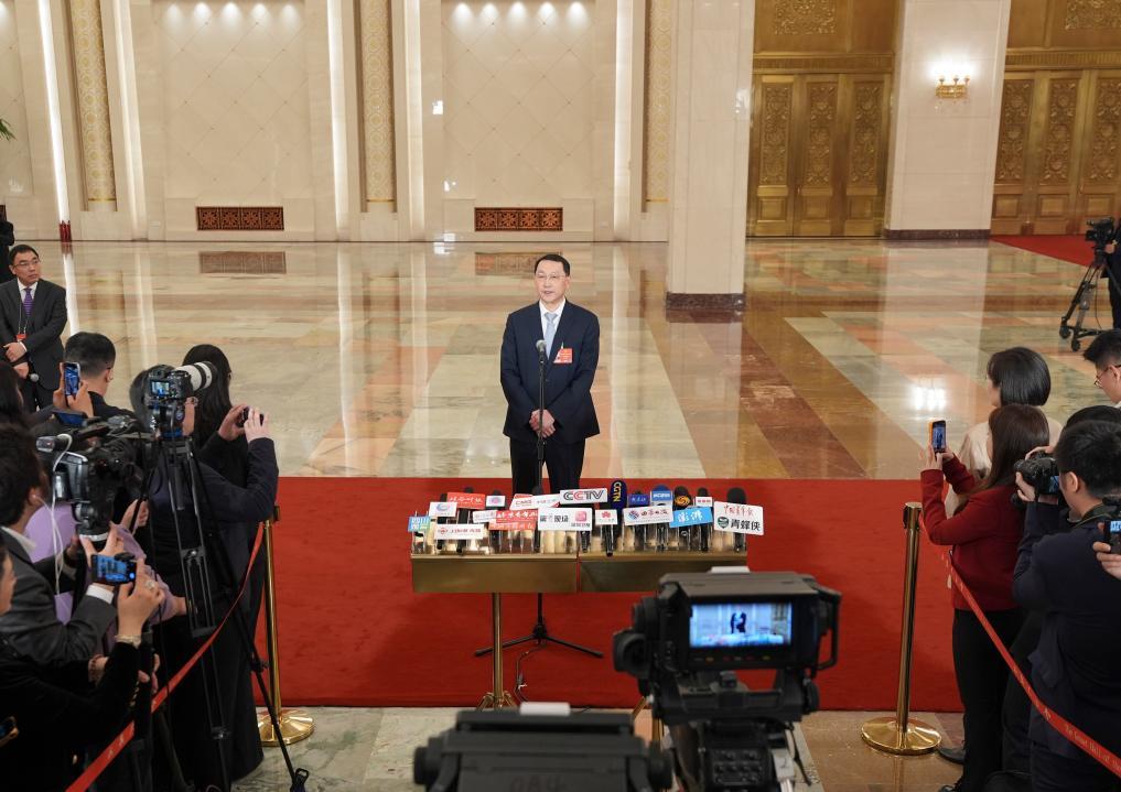 ??3月12日,第十四屆全國(guó)人民代表大會(huì)第四次會(huì)議第三場(chǎng)“部長(zhǎng)通道”集中采訪活動(dòng)在北京人民大會(huì)堂舉行。這是自然資源部部長(zhǎng)關(guān)志鷗接受媒體采訪。