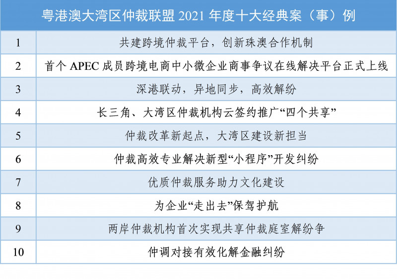 去年11月,聯(lián)盟專門發(fā)布了《珠海國際仲裁院服務(wù)橫琴粵澳深度合作區(qū)建設(shè)實(shí)施方案》,用以指引合作區(qū)仲裁活動(dòng)中如何適用內(nèi)地或澳門法律解決民商事爭議,同時(shí)評選出“2021年度十大經(jīng)典案(事)例”,涵蓋“共建跨境仲裁平臺(tái),創(chuàng)新珠澳合作機(jī)制”等案(事)例內(nèi)容。