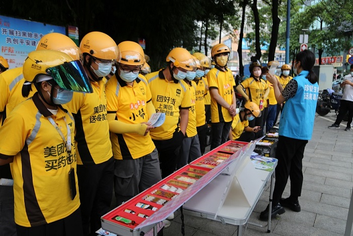 為扎實(shí)推進(jìn)禁毒宣傳“進(jìn)萬(wàn)家”,6月8日,廣東省深圳市鹽田區(qū)鹽田街道聯(lián)合美團(tuán)外賣(mài)公司,共同開(kāi)展以“心有邊界,堅(jiān)守自我”為主題的禁毒宣傳活動(dòng),通過(guò)外賣(mài)的形式將毒品預(yù)防知識(shí)傳遞到千家萬(wàn)戶(hù),以提高轄區(qū)居民抵御毒品的能力。