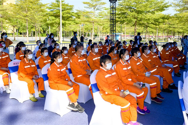 活動現(xiàn)場對全市從事一線環(huán)衛(wèi)工作累計(jì)時長超過5年的100名優(yōu)秀環(huán)衛(wèi)工人進(jìn)行褒揚(yáng),10名優(yōu)秀環(huán)衛(wèi)工人代表上臺領(lǐng)獎。他們以實(shí)際行動譜寫了新時代的勞動者之歌,為深圳創(chuàng)建全國文明城市,創(chuàng)建美好的城市環(huán)境作出了重要貢獻(xiàn)。