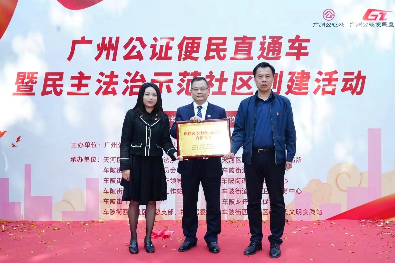 3月20日上午,廣州公證處與天河區(qū)司法局、車陂街道黨工委、辦事處在車陂公園聯(lián)合舉辦了廣州公證便民直通車暨民主法治示范社區(qū)創(chuàng)建活動啟動儀式。車陂街道自此拉開了以基層社區(qū)為依托,以黨建為引領,以公證服務為抓手,協(xié)同司法、公證、街道三方力量合作創(chuàng)建民主法治示范社區(qū)的序幕。