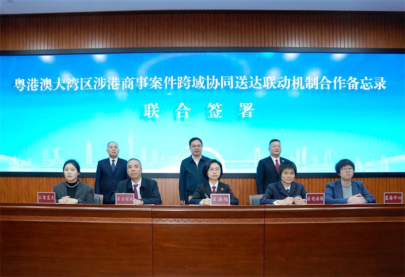 潮涌珠江,灣區(qū)同心。12月17日上午,廣東省廣州市南沙區(qū)人民法院(廣東自由貿(mào)易區(qū)南沙片區(qū)人民法院)攜手廣州市南沙區(qū)司法局、廣州市南沙公證處、深圳市藍(lán)海法律查明和商事調(diào)解中心、廣州市匯智藍(lán)天國際法律與商事服務(wù)中心暨“一帶一路”域外法查明(廣州)中心,共同簽署《關(guān)于構(gòu)建粵港澳大灣區(qū)涉港商事案件跨域協(xié)同送達(dá)聯(lián)動(dòng)機(jī)制合作備忘錄》(以下簡(jiǎn)稱《備忘錄》)。