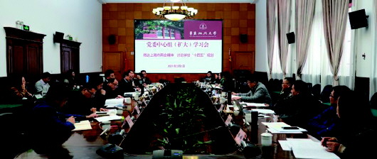 本報訊 記者余東明 2月1日,華東政法大學在長寧校區(qū)圓桌會議室召開黨委中心組(擴大)學習會,傳達上海市“兩會精神”,討論學校“十四五”規(guī)劃,共謀一流政法大學建設藍圖。華東政法大學領導和黨委常委及“十四五”規(guī)劃編寫組成員現(xiàn)場參會,各學院黨委(黨總支、直屬黨支部)書記、院長通過在線分會場參會。華東政法大學黨委書記郭為祿主持會議。 結合學習情況和學?!笆奈濉币?guī)劃實際,郭為祿對編制工作提出三方面要求:首先要繼續(xù)學深悟透,要繼續(xù)扎實深入學習習近平新時代中國特色社會主義思想,尤其是習近平法治思想、習近平總書記關于教育的重要論述和在上海考察時的重要講話精神。同時還要學習上海市“十四五”規(guī)劃征求意見稿等文件精神,把學?!笆奈濉币?guī)劃與中央和上海市的相關精神對標對表,做好頂層設計,著眼新發(fā)展格局;其次要做好貫徹落實,緊密結合各方面工作實際,上下貫通、左右逢源,運用好系統(tǒng)思維,學院規(guī)劃要擺在學校規(guī)劃里、學校規(guī)劃要擺在法治中國和上海市規(guī)劃建設中,緊抓大學的初心使命和根本任務,把為黨育人、為國育才的人才培育作為辦學第一要事,拿出特色“+法學”,分類發(fā)展、特色發(fā)展,培育德法兼修的法治人才;最后要切實做細做實,學校“十四五”規(guī)劃要前后有銜接,學校定位務必要準確、目標務必要明確,改革舉措有力度,具體措施有操作性,規(guī)劃清晰直接、引領性明確。