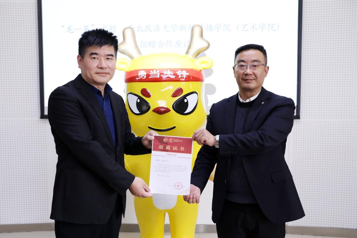 3月29日,深圳文創(chuàng)品牌“龍一第”向西北政法大學(xué)新聞傳播學(xué)院(藝術(shù)學(xué)院)捐贈(zèng)IP雕塑儀式在長安校區(qū)舉行。
