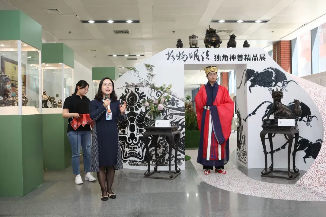張曉東女士作為主辦方代表介紹了中國法學(xué)交流基金會蔣勇律師專項(xiàng)基金對傳統(tǒng)法治文化和青年法治人才成長的關(guān)注與支持。本次展覽的絕大部分展品系張曉東女士的個(gè)人珍藏。她情真意切地分享了自己的收藏故事,講述鐘情于傳統(tǒng)文化賦予生活的美好意義。她表示本次展覽圓了自己兩個(gè)心愿:一是讓神獸從設(shè)在各地的天同律師事務(wù)所分所跨越千里首次匯集到北京,集合在蔣勇律師的母校中國政法大學(xué)。二是在北京服裝學(xué)院崔巖老師的幫助下復(fù)制出在歷史上流行的獬豸冠。未來,希望通過展覽等文化活動(dòng)的平臺,將熱愛傳統(tǒng)文化的社會各界人士匯聚在一起,為優(yōu)秀傳統(tǒng)法律文化的發(fā)揚(yáng)光大貢獻(xiàn)一份力量。