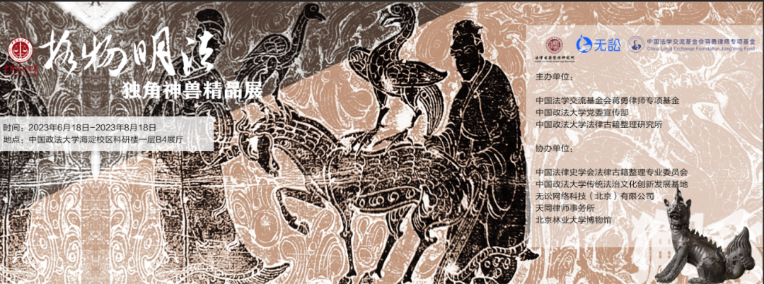 6月21日,“格物明法:獨(dú)角神獸精品展”開展式在中國政法大學(xué)海淀校區(qū)舉行。展覽由中國法學(xué)交流基金會蔣勇律師專項(xiàng)基金、中國政法大學(xué)黨委宣傳部、法律古籍整理研究所共同主辦,中國法律史學(xué)會法律古籍整理專業(yè)委員會、中國政法大學(xué)傳統(tǒng)法治文化創(chuàng)新發(fā)展基地、無訟網(wǎng)絡(luò)科技(北京)有限公司、天同律師事務(wù)所和北京林業(yè)大學(xué)博物館等單位協(xié)辦。