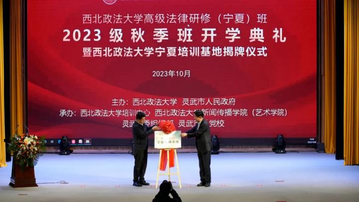 10月8日,西北政法大學高級法律研修(寧夏)班2023級秋季班開學典禮暨西北政法大學(寧夏)培訓基地揭牌儀式在寧夏回族自治區(qū)靈武市召開。