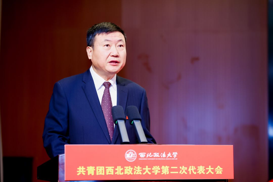 郭武軍代表學校黨委向大會的召開表示熱烈祝賀,向長期以來關心和支持學校共青團工作的共青團陜西省委、省教育團工委以及兄弟院校表示感謝,并充分肯定了學校各級團組織團結帶領廣大團員青年取得的成績和貢獻。他強調西法大青年要堅定理想信念,樹立報國之志,以昂揚之姿馳騁青春賽道;要傳承紅色基因,涵養(yǎng)浩然之氣,以擔當之勇砥礪前行之路;要勇立時代前沿,提升創(chuàng)新之能,以進取之心探索未知領域;要時刻牢記以人民為中心,踐行法治精神,在中國式現代化建設中挺膺擔當。