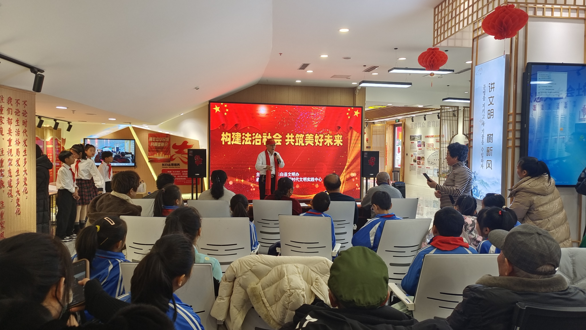 為增強(qiáng)學(xué)生的法律意識,不斷凝聚奮進(jìn)力量,扎實(shí)有效開展新時(shí)代法治宣傳教育。長白縣委宣傳部、縣文明辦組織文明實(shí)踐志愿服務(wù)隊(duì)在新時(shí)代文明實(shí)踐中心(所、站)開展“構(gòu)建法治社會共筑美好未來”文藝活動,以寓教于樂的方式,讓在場的同學(xué)們品嘗了一道豐盛的法治文化大餐。