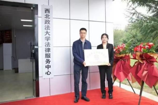 開幕式后,趙全宇、徐征、趙作明共同為西北政法大學法律服務中心新辦公場所揭牌。西安市法律援助中心黨總支副書記李鵬為“西安市法律援助中心西北政法大學法律援助工作站”授牌。