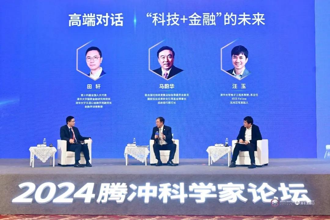“‘科技+金融’的未來”高端對話環(huán)節(jié),第十四屆全國人大代表、清華大學(xué)國家金融研究院院長、清華大學(xué)五道口金融學(xué)院副院長、金融學(xué)講席教授田軒,聯(lián)合國可持續(xù)發(fā)展目標(biāo)指導(dǎo)委員會委員、國家科技成果轉(zhuǎn)化引導(dǎo)基金理事長、招商銀行原行長馬蔚華,清華大學(xué)電子工程系教授、系主任,IEEE Fellow,無問芯穹發(fā)起人汪玉分別發(fā)表觀點。