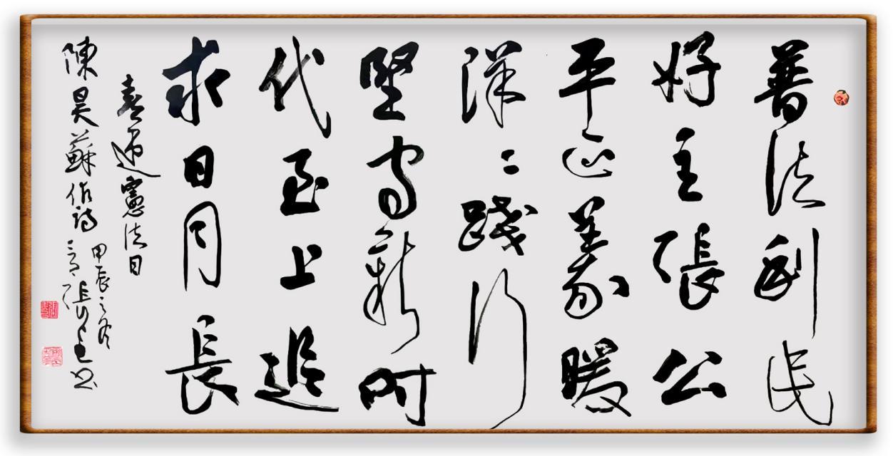 12月4日是第十一個(gè)國家憲法日。當(dāng)天,由法制日?qǐng)?bào)社、中國人民解放軍儀仗司禮大隊(duì)主辦的“‘書·法’系列活動(dòng)走進(jìn)中國人民解放軍儀仗司禮大隊(duì)暨‘書·法’系列叢書書法作品集首發(fā)活動(dòng)”在北京舉行。活動(dòng)得到中國人民對(duì)外友好協(xié)會(huì)原會(huì)長陳昊蘇的熱情支持,陳會(huì)長以《喜迎憲法日》為題賦詩二首,并在詩的開頭寫到:“在國家憲法日舉行‘書·法’有關(guān)活動(dòng),意義十分重大。我謹(jǐn)寄上詩二首,表示熱烈祝賀?!?/p>