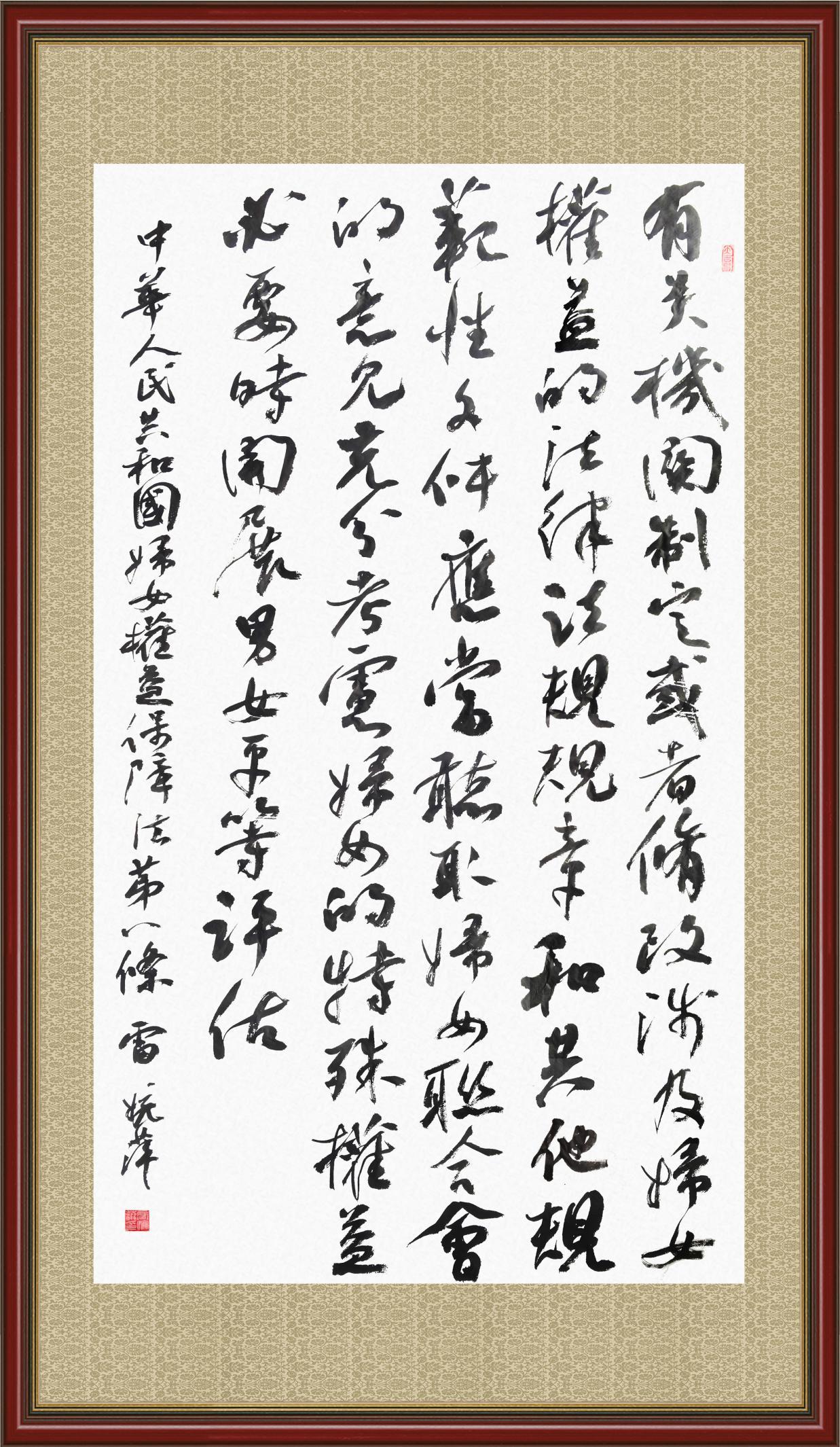 在“三八”國(guó)際婦女節(jié)之際,“書(shū)·法”系列活動(dòng)邀請(qǐng)書(shū)法家及書(shū)法愛(ài)好者們書(shū)寫(xiě)《中華人民共和國(guó)婦女權(quán)益保障法》,向每一位閃閃發(fā)光的女性同胞,致以最美好的祝福!