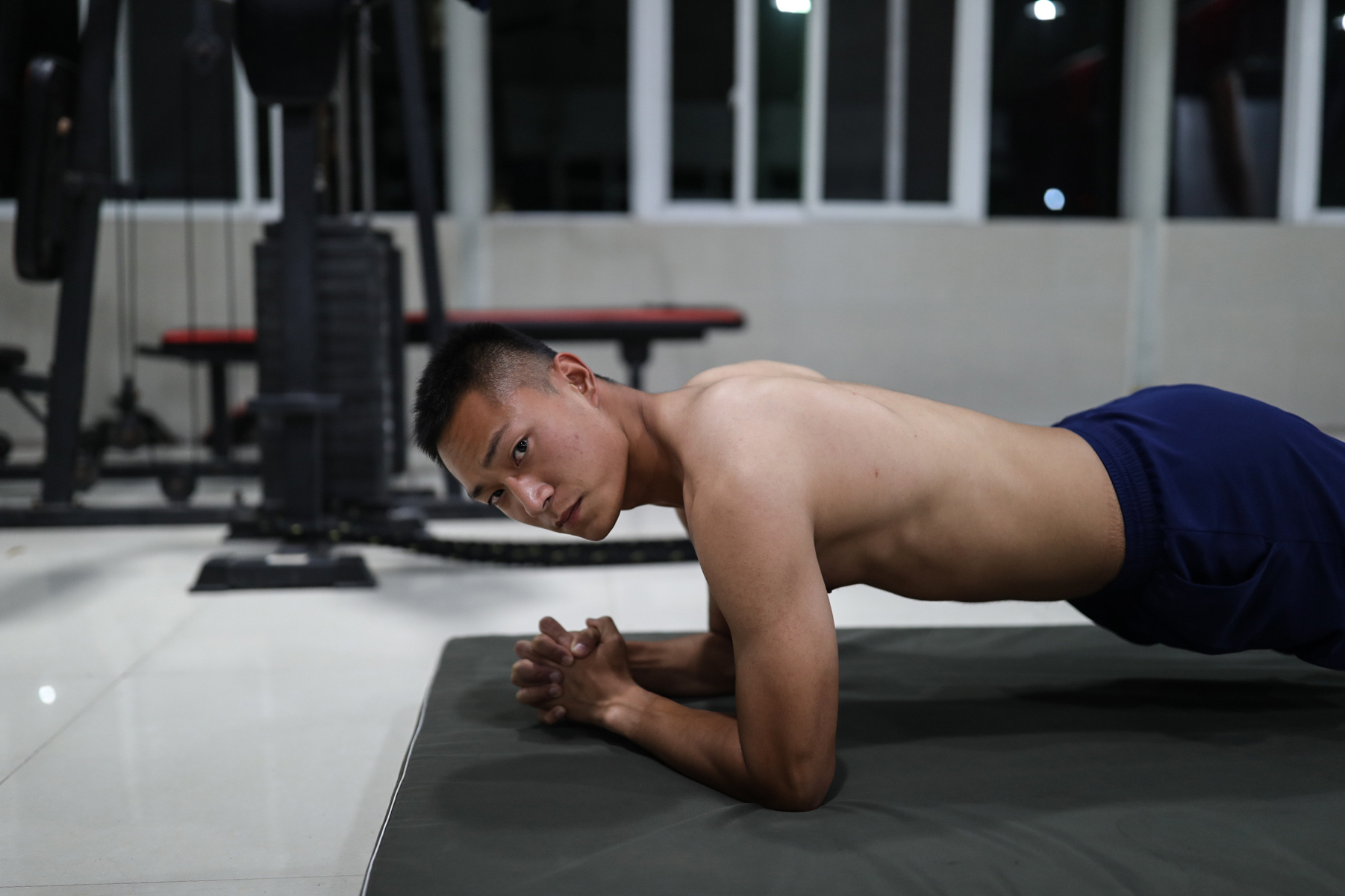 10月4日晚上,新消防員田祥像往常一樣來(lái)到訓(xùn)練大棚開(kāi)始熱身,雖然國(guó)慶放假休息,但他所在的體能“小分隊(duì)”沒(méi)有一個(gè)人缺席。田祥很喜歡自己訓(xùn)練后大汗淋漓的模樣,他覺(jué)得這是一個(gè)男人最帥的時(shí)候。