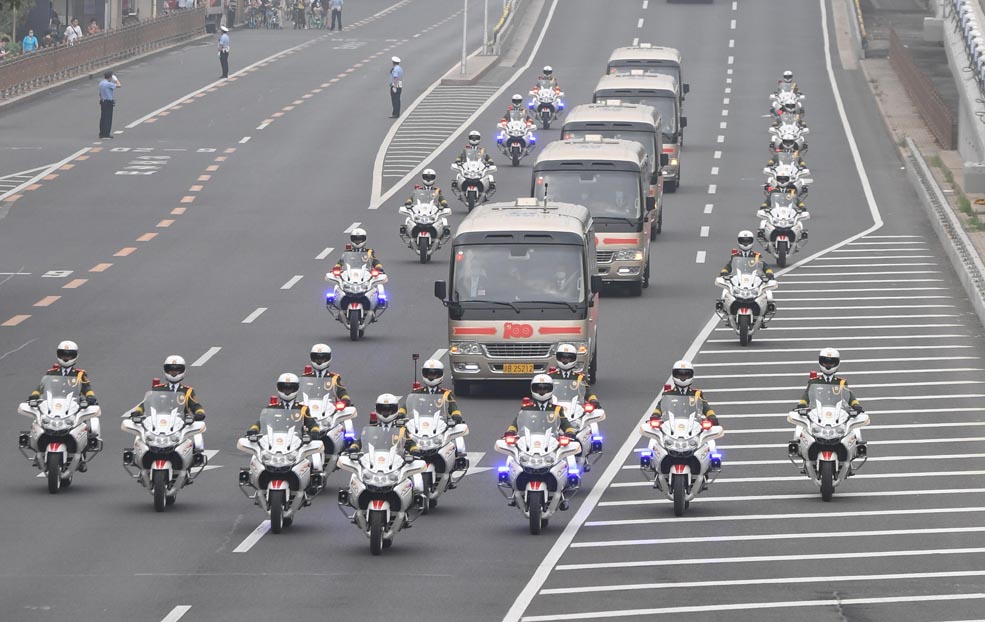 6月29日,慶祝中國(guó)共產(chǎn)黨成立100周年“七一勛章”頒授儀式在北京人民大會(huì)堂金色大廳隆重舉行。這是“七一勛章”獲得者集體乘坐禮賓車,由國(guó)賓護(hù)衛(wèi)隊(duì)護(hù)衛(wèi)前往人民大會(huì)堂。