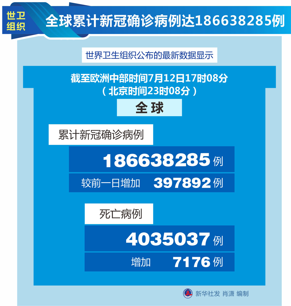 圖表:世衛(wèi)組織:全球累計(jì)新冠確診病例達(dá)186638285例