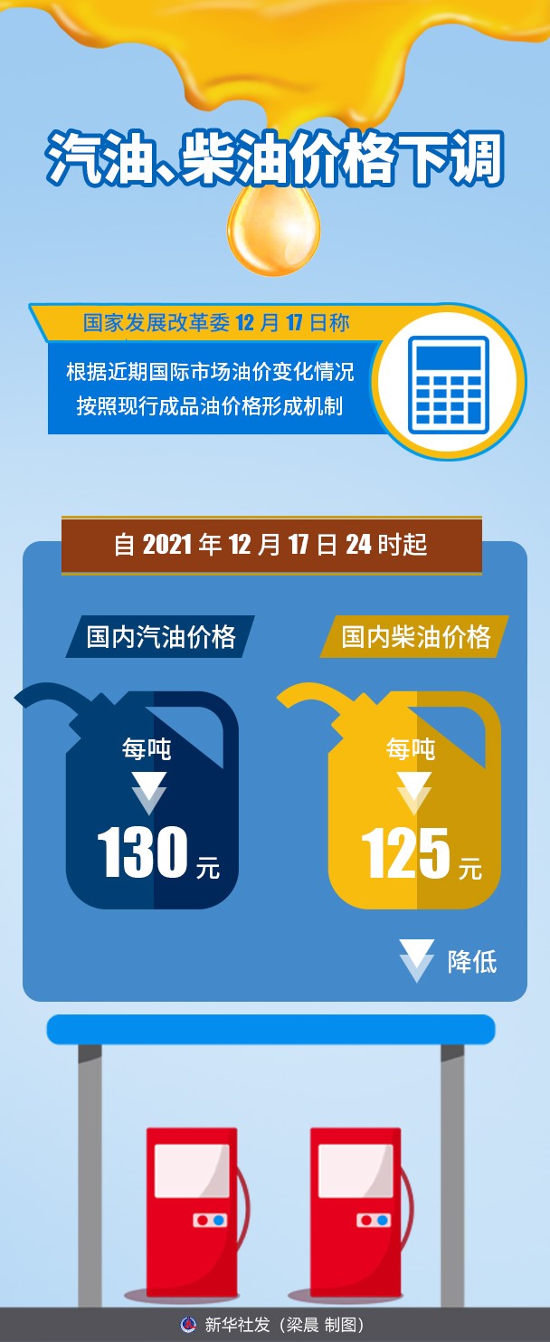 國家發(fā)展改革委12月17日稱,根據(jù)近期國際市場(chǎng)油價(jià)變化情況,按照現(xiàn)行成品油價(jià)格形成機(jī)制,自2021年12月17日24時(shí)起,國內(nèi)汽油、柴油價(jià)格每噸分別降低130元和125元。