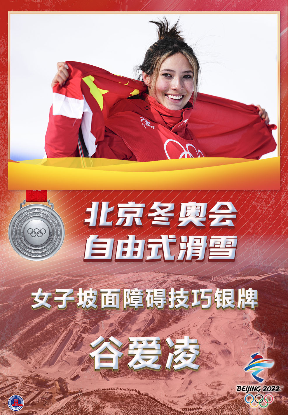 2月15日,在北京冬奧會自由式滑雪女子坡面障礙技巧決賽中,谷愛凌最后一輪頂住壓力,得到86.23分的高分,繼大跳臺奪金后再取一枚銀牌。瑞士名將瑪?shù)贍柕隆じ窭啄聭{借第二輪中的完美一滑,以86.56分奪冠。