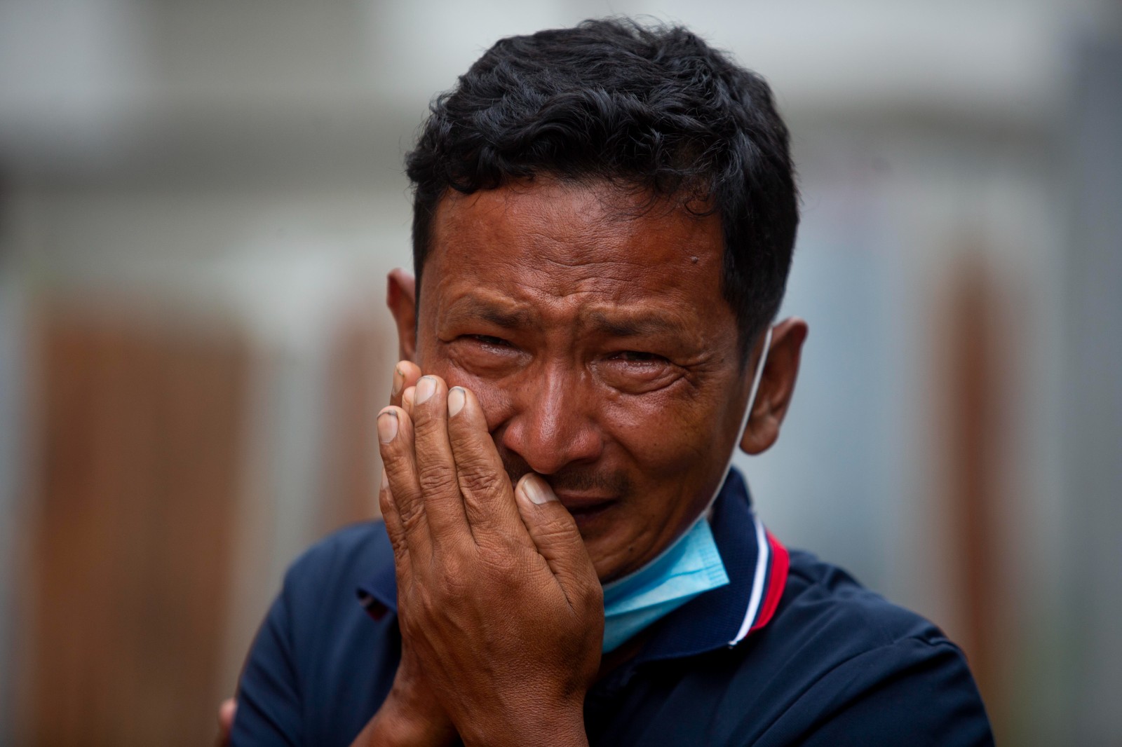 5月31日,墜毀客機(jī)遇難者家屬在尼泊爾加德滿都一所醫(yī)院外哭泣。