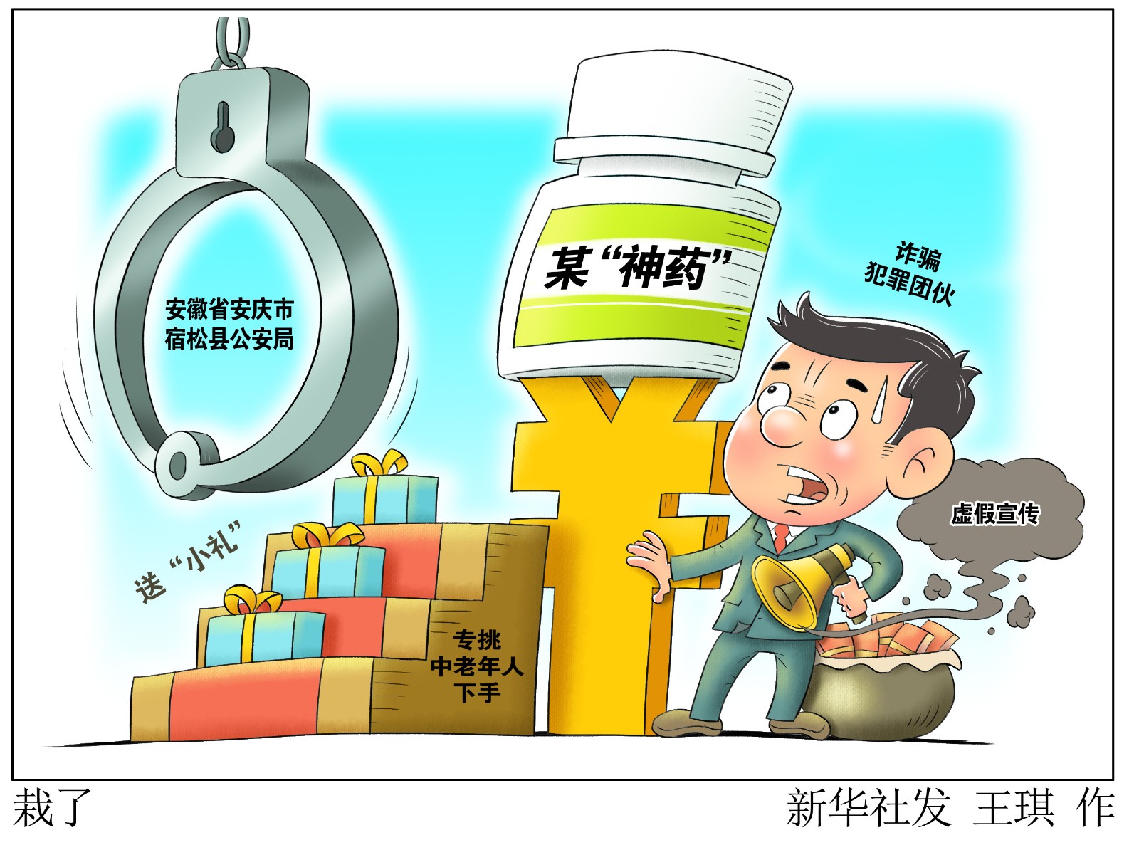 評(píng)書(shū)機(jī)、老人鞋等“小禮”請(qǐng)先笑納,“包治百病”的“神藥”快來(lái)試試?小心“騙你沒(méi)商量”!記者日前從安徽省安慶市宿松縣公安局了解到,當(dāng)?shù)鼐酱虻粢粋€(gè)向中老年群體虛假宣傳兜售藥品進(jìn)行詐騙的犯罪團(tuán)伙,全國(guó)多地?cái)?shù)千人上當(dāng),涉案金額近千萬(wàn)元。