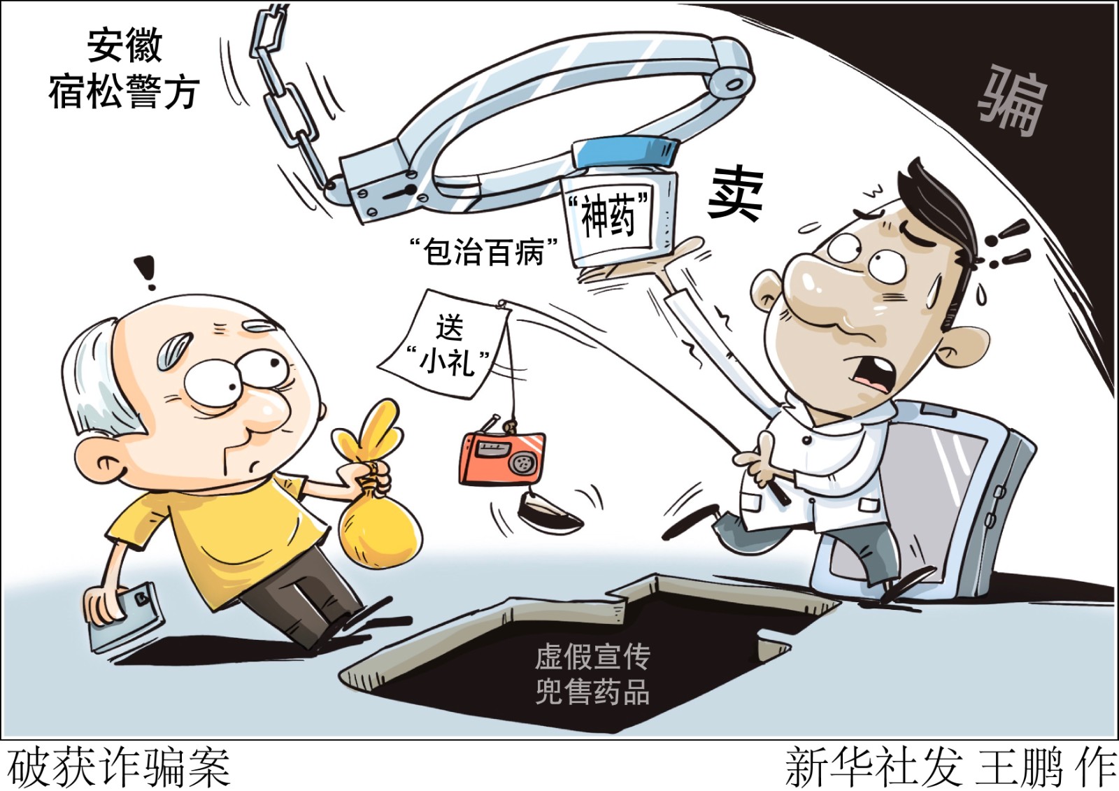 評書機(jī)、老人鞋等“小禮”請先笑納,“包治百病”的“神藥”快來試試?小心“騙你沒商量”!記者日前從安徽省安慶市宿松縣公安局了解到,當(dāng)?shù)鼐酱虻粢粋€向中老年群體虛假宣傳兜售藥品進(jìn)行詐騙的犯罪團(tuán)伙,全國多地數(shù)千人上當(dāng),涉案金額近千萬元。