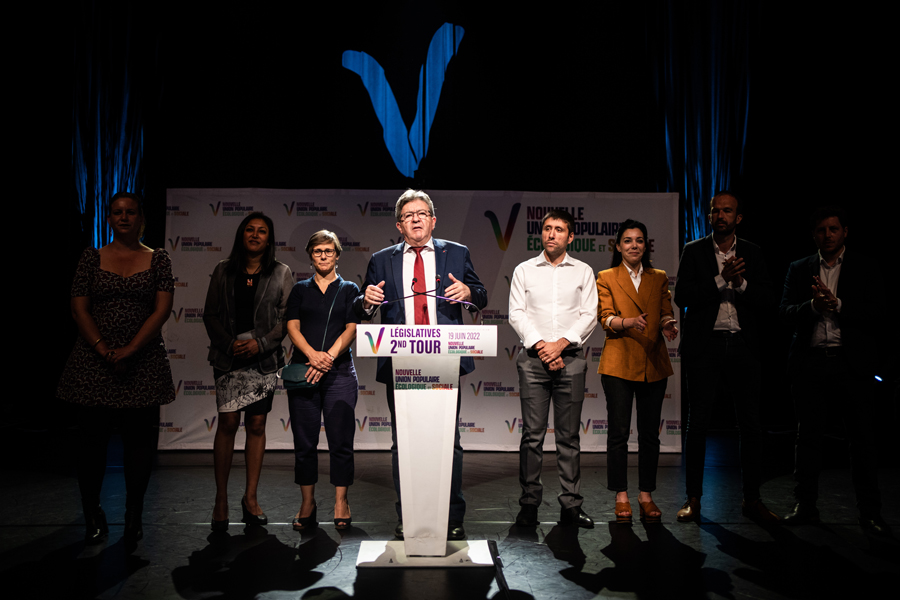 6月19日,法國(guó)極左翼政黨“不屈法國(guó)”領(lǐng)導(dǎo)人梅朗雄在巴黎舉行的選后集會(huì)上講話。