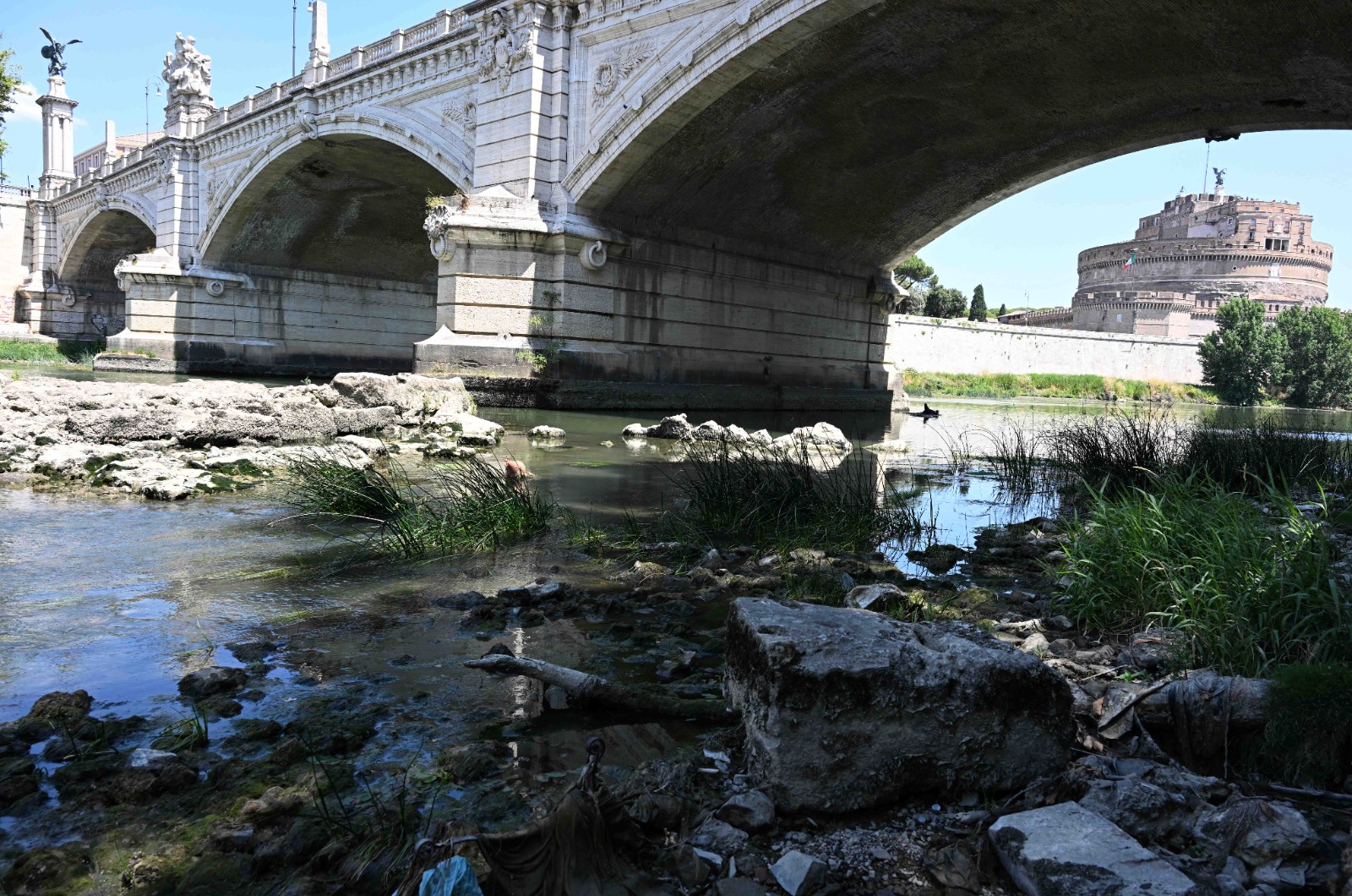 這是6月19日在意大利羅馬拍攝的水位降低的臺(tái)伯河。