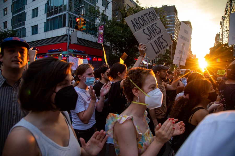 6月24日,墮胎權(quán)支持者在美國紐約街頭抗議。