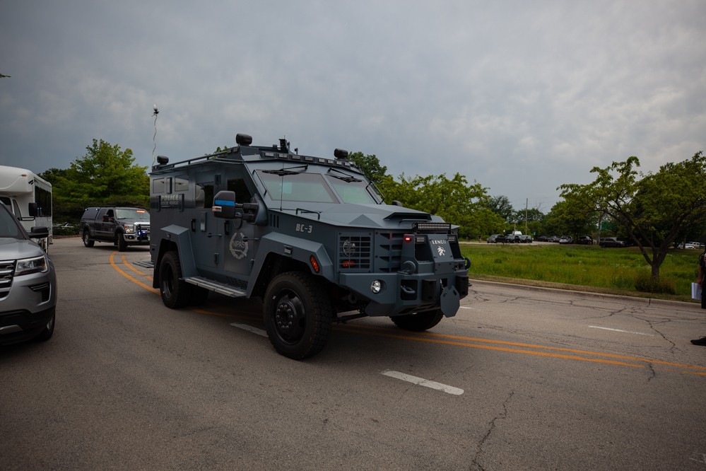 7月4日,一輛警車(chē)開(kāi)往美國(guó)伊利諾伊州海蘭帕克市的槍擊現(xiàn)場(chǎng)。