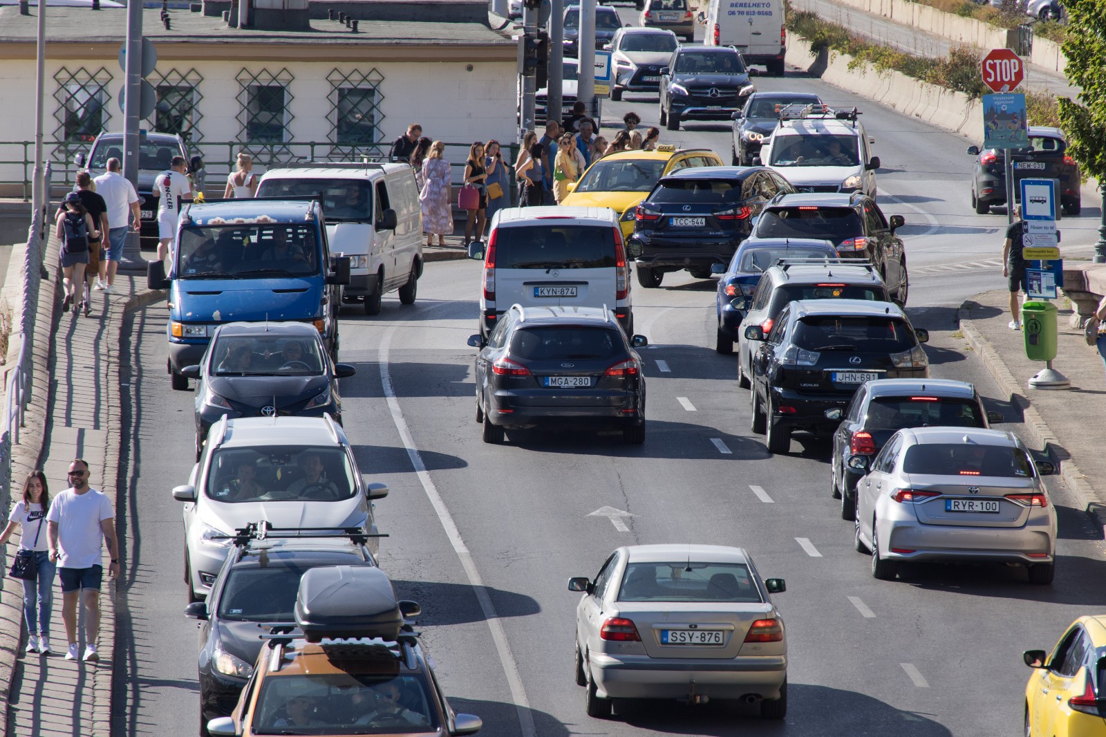 7月13日,汽車(chē)在匈牙利布達(dá)佩斯市中心行駛。
