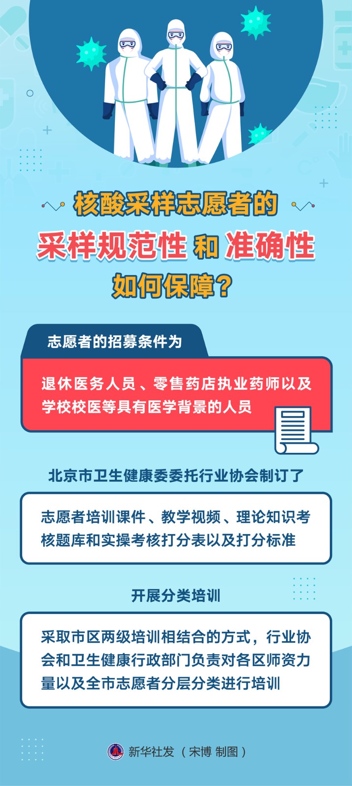 李昂表示,為確保志愿者采樣的規(guī)范性和準確性,北京市衛(wèi)生健康委委托行業(yè)協(xié)會制訂了志愿者培訓(xùn)課件、教學(xué)視頻、理論知識考核題庫和實操考核打分表以及打分標準,開展分類培訓(xùn),采取市區(qū)兩級培訓(xùn)相結(jié)合的方式,行業(yè)協(xié)會和衛(wèi)生健康行政部門負責(zé)對各區(qū)師資力量以及全市志愿者分層分類進行培訓(xùn)。
