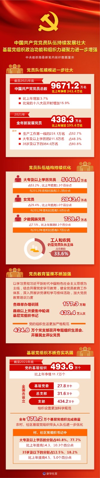 圖表:中國共產(chǎn)黨黨員隊伍持續(xù)發(fā)展壯大 基層黨組織政治功能和組織力凝聚力進(jìn)一步增強(qiáng)