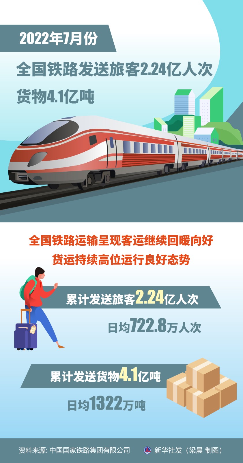 (圖表)2022年7月份全國鐵路發(fā)送旅客2.24億人次、貨物4.1億噸