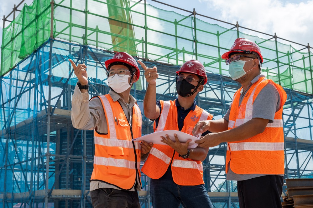 7月25日,西亞赫明(中)在位于馬來西亞彭亨州的馬東鐵項(xiàng)目六分部施工現(xiàn)場工作。