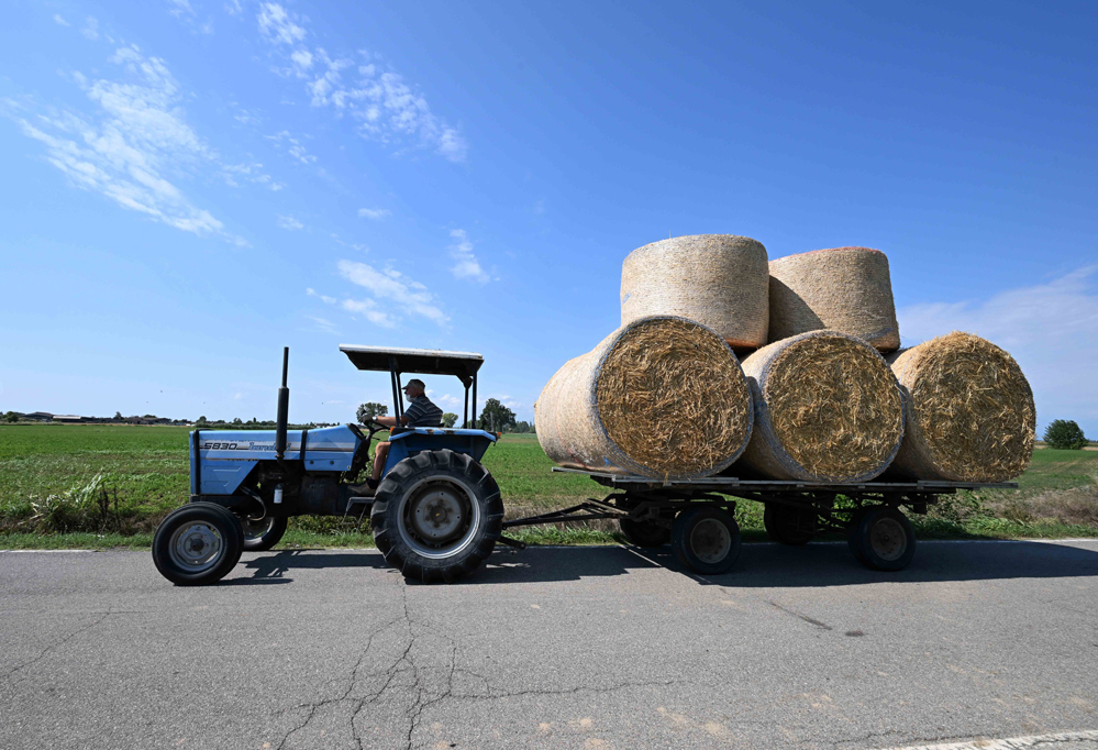 8月12日,在意大利倫巴第大區(qū)曼托瓦,農民運送草垛。