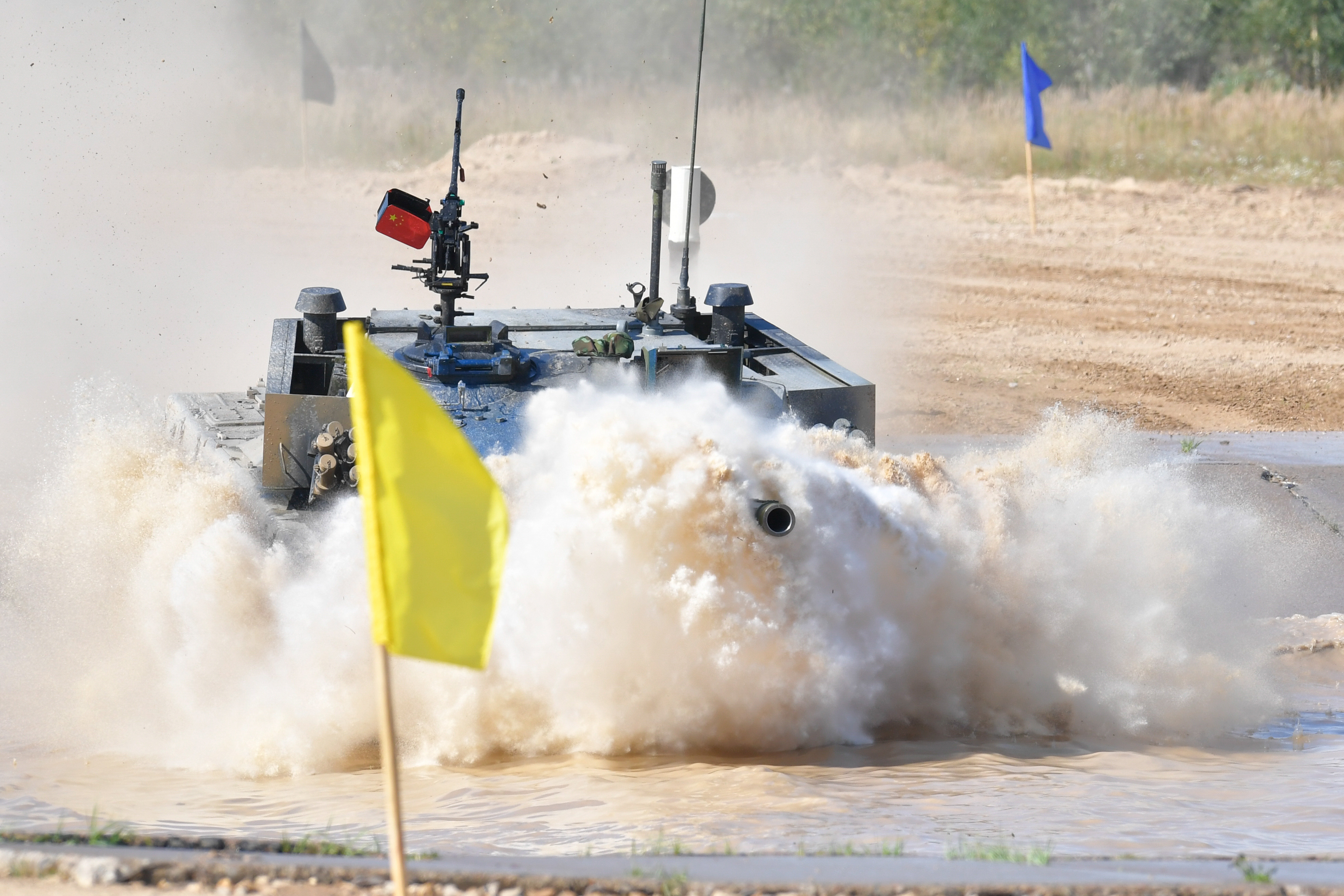 8月14日,在俄羅斯莫斯科州阿拉比諾靶場,編號336的中國參賽隊(duì)96B坦克亮相賽場。