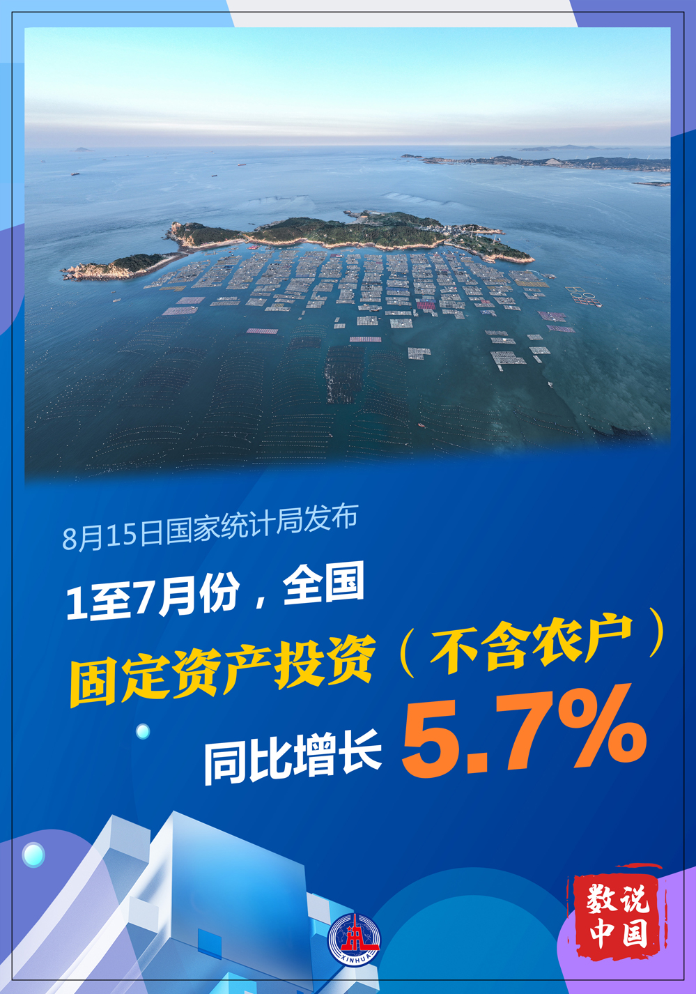 國(guó)家統(tǒng)計(jì)局8月15日發(fā)布數(shù)據(jù)顯示,1至7月份,全國(guó)固定資產(chǎn)投資(不含農(nóng)戶)319812億元,同比增長(zhǎng)5.7%;7月份環(huán)比增長(zhǎng)0.16%。
