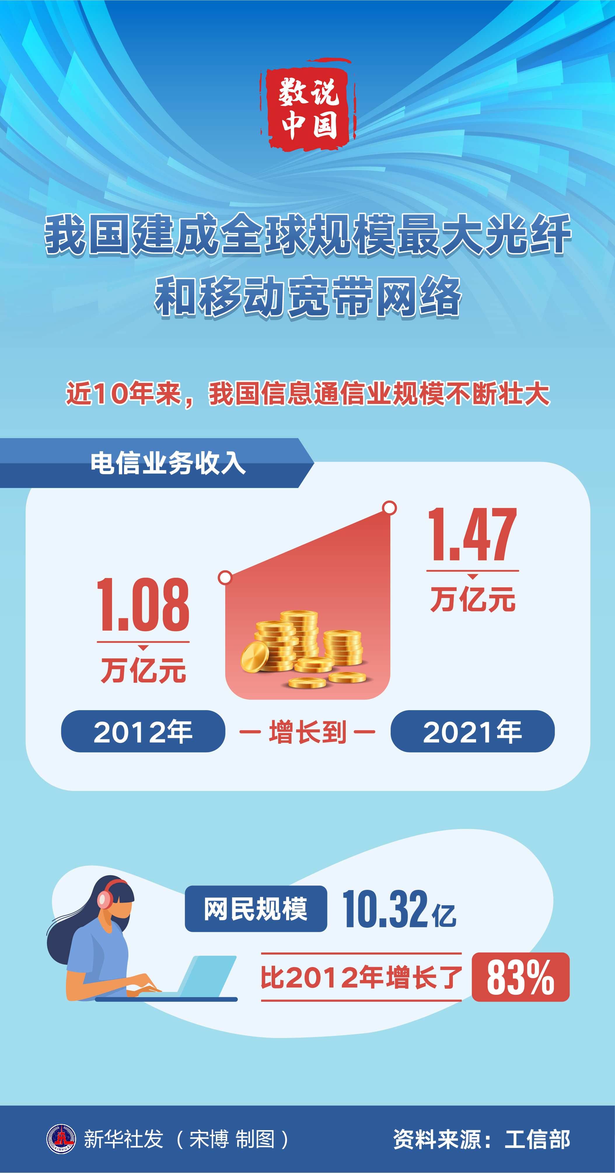 工信部信息通信發(fā)展司司長謝存8月19日表示,我國建成了全球規(guī)模最大的光纖和移動寬帶網絡,固定網絡逐步實現(xiàn)從十兆到百兆、再到千兆的躍升,移動網絡實現(xiàn)從“3G突破”到“4G同步”再到“5G引領”的跨越。