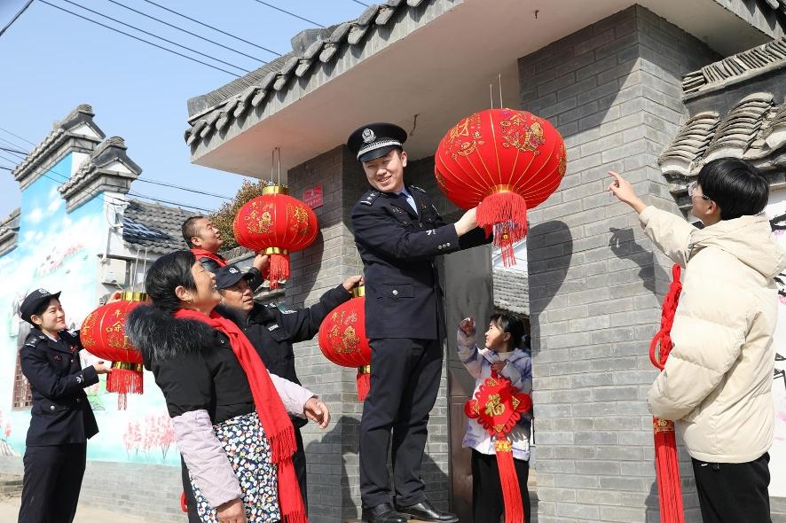 1月19日,江蘇省寶應縣夏集派出所民警與網(wǎng)格員給獨居老人送去春聯(lián)、燈籠及慰問品,并與他們一起掛燈籠喜迎新春。