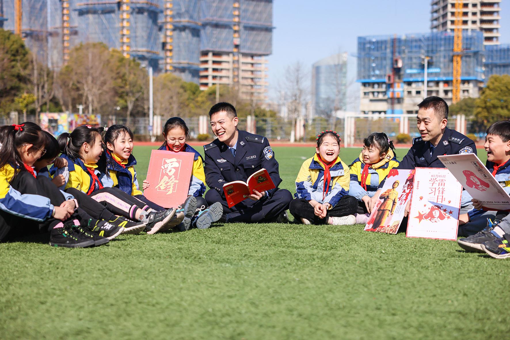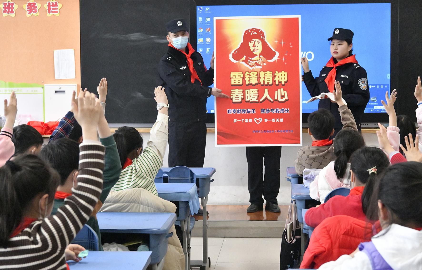 3月2日,河南省鄭州市公安局金水分局巡特警隊員在實驗小學(xué)開展“雷鋒精神 春暖校園”活動。