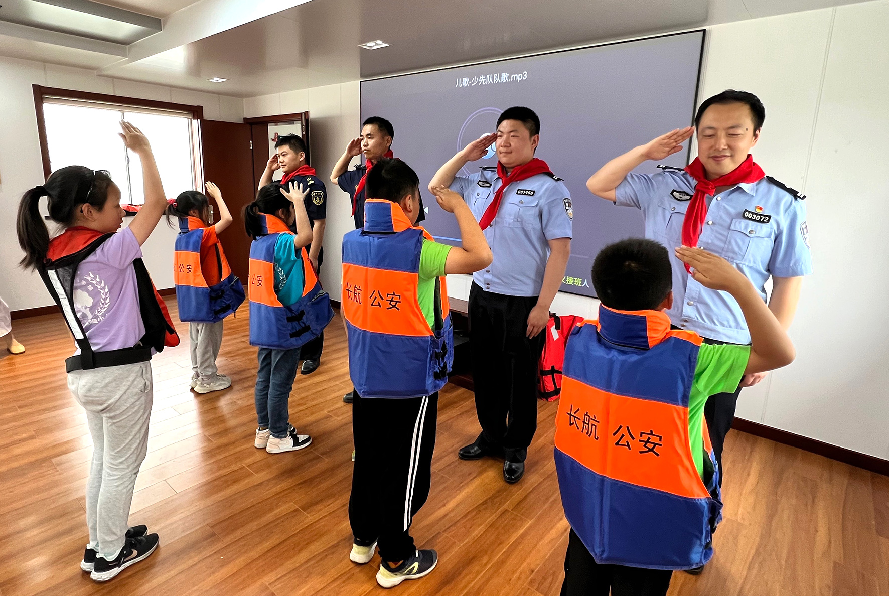 5月26日,長(zhǎng)江航運(yùn)公安局常州派出所聯(lián)合常州海事局開展“長(zhǎng)江大保護(hù),大手拉小手”——迎“六一”警營(yíng)開放日主題活動(dòng)。