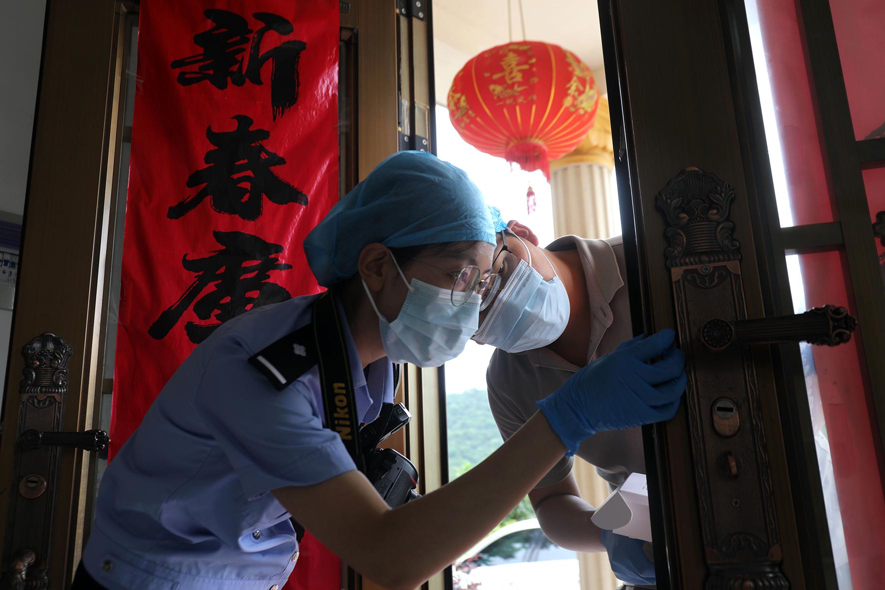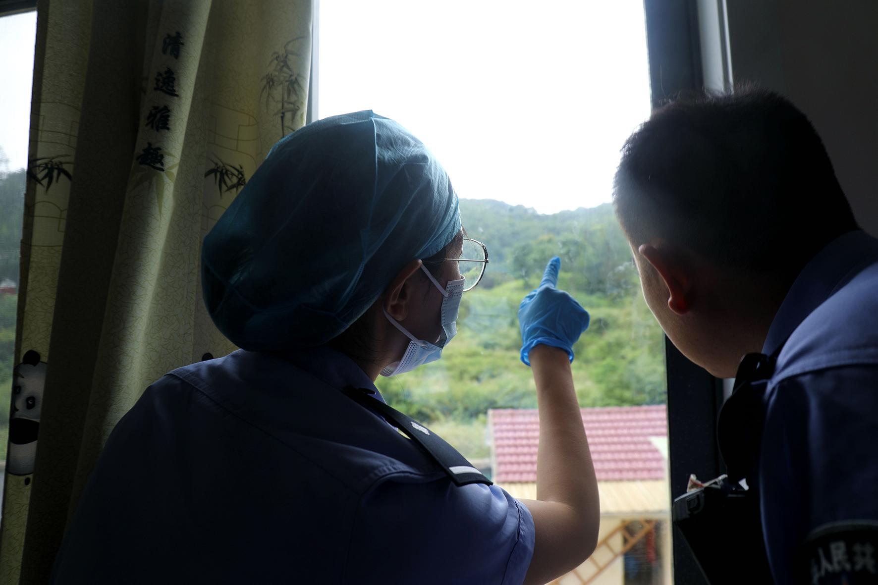 圖五、現(xiàn)場勘查結(jié)束,民警終于可以摘下頭套歇會兒。