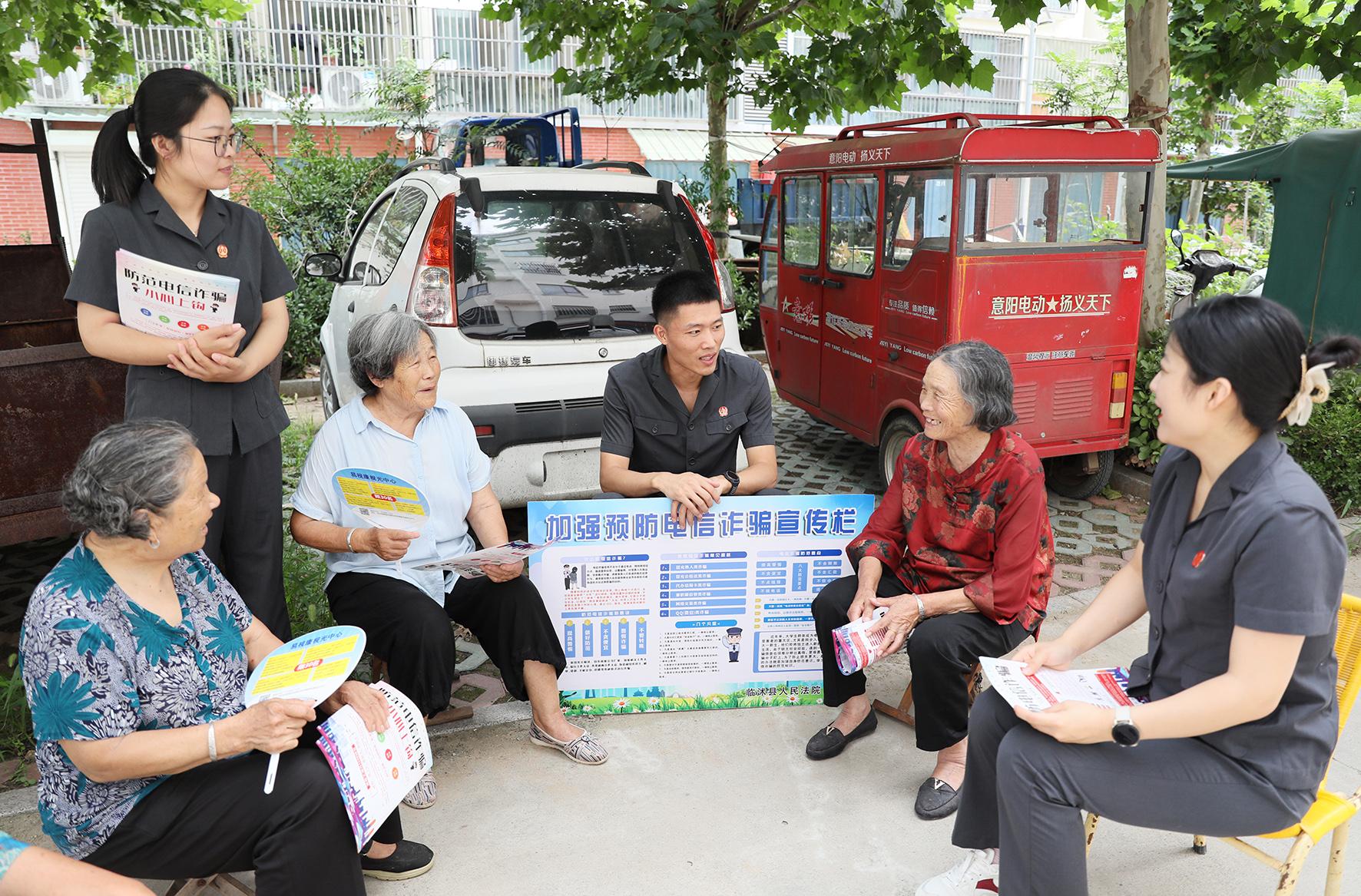 7月19日,山東省臨沭縣人民法院干警走進(jìn)南溝頭社區(qū),開展防范電信網(wǎng)絡(luò)詐騙普法宣傳活動(dòng)。