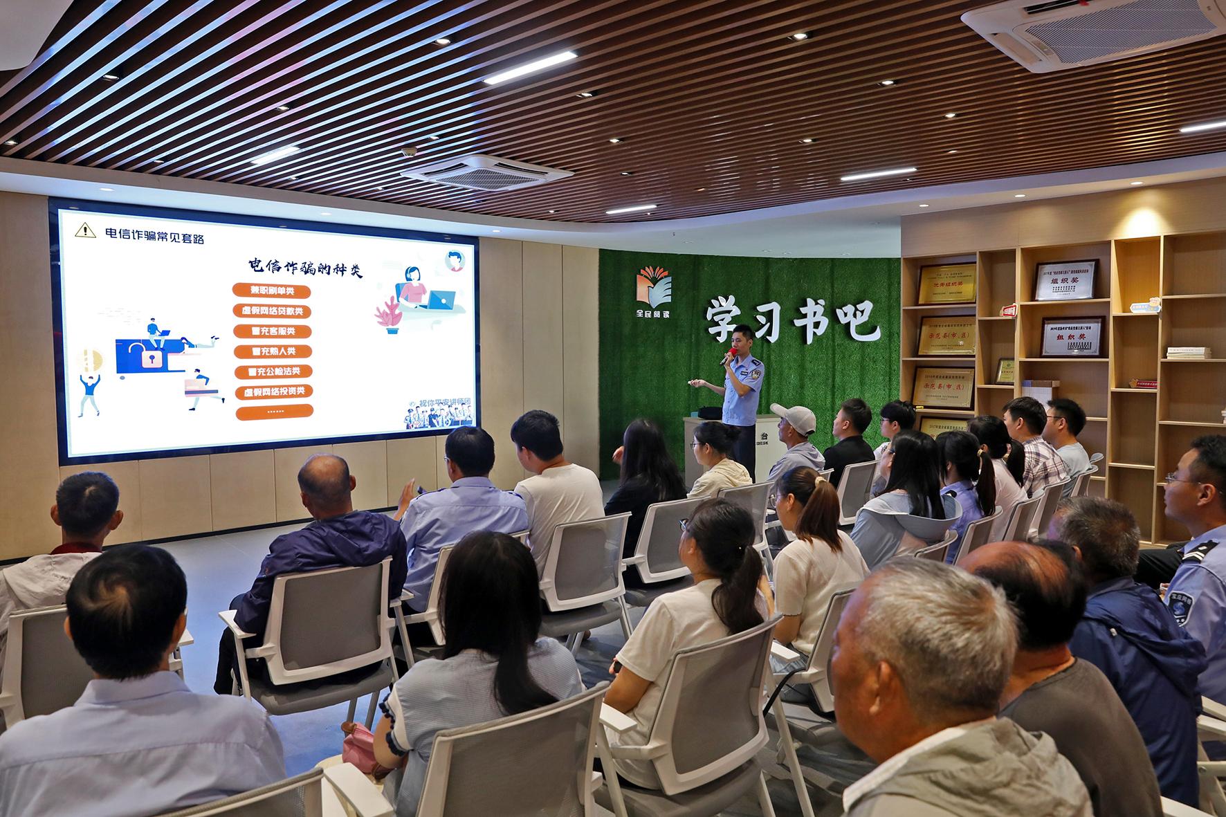 7月18日,江蘇省寶應(yīng)縣公安局民警走進(jìn)寶應(yīng)縣新時(shí)代文明實(shí)踐中心舉辦暑期反電信詐騙宣傳講座。