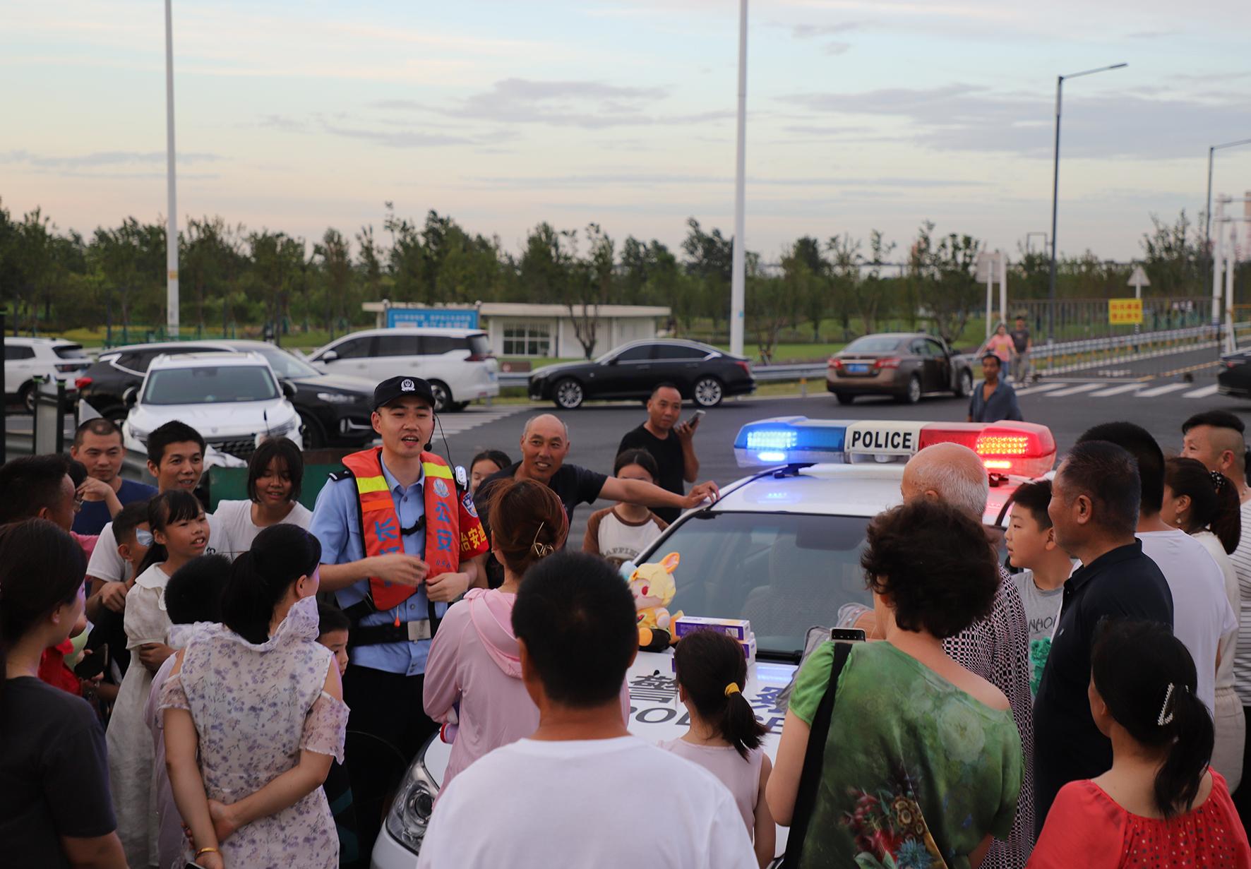 7月25日晚,長江航運(yùn)公安局南通分局民警來到長江南通開發(fā)區(qū)段江堤處,通過防溺水知識問答、救援設(shè)施演示、發(fā)放宣傳手冊等形式,促進(jìn)提高游客們的安全意識和防范能力。